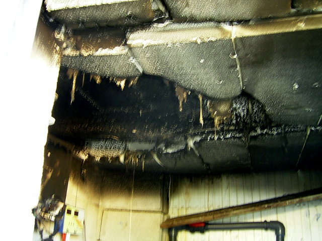 Here in the background you can also see the wall of the pool made of polystyrene blocks and that the ceiling did not catch fire. |